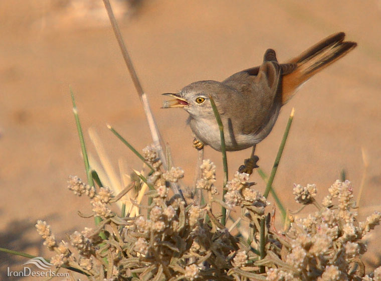 سسک بیابانیمشخصات ظاهری: این پرنده، 5/11 سانتیمتر طول دارد. اندازه اش کوچک است و با دم نسبتا بلند و پاهای بلند به رنگ شنی قهوه ای ودمگاه و شاهپرهای اولیه ی قرمز بلوطی دیده می شود. دم ، درهنگام باز شدن، به سه رنگ قهوه ای تیره و حاشیه های سفید و مرکز نارنجی دیده می شود. منقار ظریف و زرد رنگ، پاها و عنبیه زرد و گاهی حاشیه ی دور چشم ها بی رنگ است. اغلب روی زمین با جهش های کوتاه در حال تکان دادن دمش دیده می شود. و در ارتفاع پایین در لابلای بوته ها پرواز کرده و خود را پنهان می سازد. صدا: صدای این پرنده خشک و ضعیف ؛ شبیه «دکسررررررر»با تأکید بر «د» یا «چورر-ررر» و یا با صدای بلند«چه-چه- چه- چه- » شنیده می شود.زیستگاه: این پرنده در نواحی باز نیمه بیابانی و تپه ماهورهای با بوته های کوتاه و پراکنده به سر برده و زمستان ها ، به صورت عبوری در اراضی نیمه بیابانی با بوته های اندکی شوردوست دیده شده ولابلای بوته ها آشیانه یم سازد. درایران، بومی و فراوان است.حفاظت : ابتدا باید بررسی دقیقی از پراکندگی این پرنده صورت گیرد، اما، چنین به نظر می رسد که، درحال حاضر، نیازی به حفاظت ویژه ندارد.