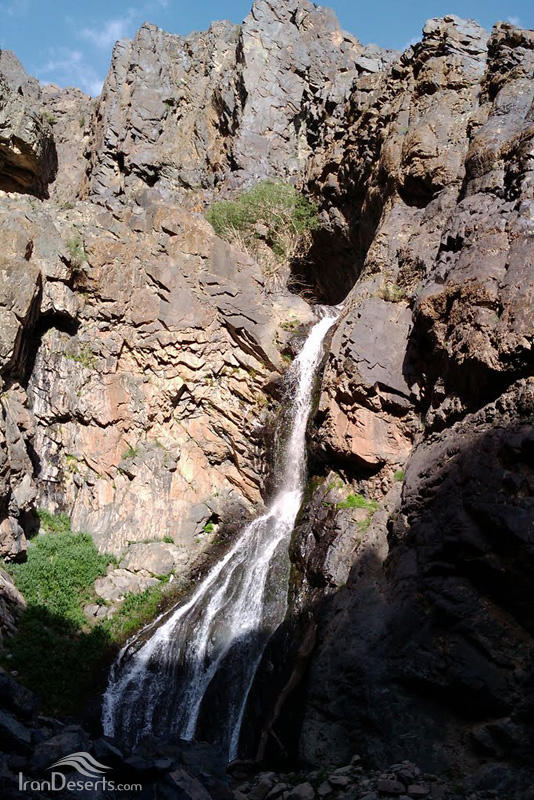 این آبشار در دامنه های قله 4350 متری کوه شاه در 12 کیلومتری شمال غربی شهرستان رابر قرار گرفته است. ارتفاع آبشار در حدود 15 متر و در ارتفاع 3260 متری از سطح دریا واقع است. این آبشار در ارتفاعات هزار قرار گرفته که بلندترین قله آن کوه هزار با ارتفاع 4501 متر چهارمین قله مرتفع کشور محسوب می گردد.