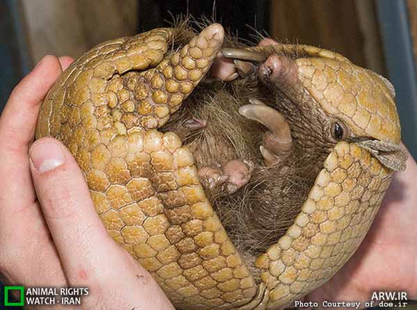 بدن آرمادیلو با صفحات استخوانی به*هم پیوسته پوشیده شده تا به هنگام خطر بتواند به صورت گلوله توپ استخوانی درآمده و از خود دفاع کند.