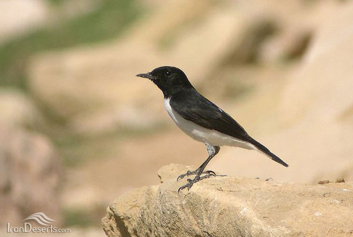 چکچک سیاه شکم سفید (چکچک سیاه)مشخصات ظاهری: این پرنده، 5/16 سانتیمتر طول دارد و بسیار شبیه چکچک ابلق خاوری، اما اندکی بزرگتر با سر درشت تر است و راست تر می نشیند. سر، گردن، بالای روتنه و بال ها سیاه شفاف و سفیدی پشت بیشتر است و تا وسط بال ها امتداد دارد. سینه، شکم، قسمت پایین پشت و دمگاه سفید خالص است. پرنده ی نابالغ سیاه کدر و اندکی مایل به قهوه ای است.صدا: صدای این پرنده بلند و آهنگین و کوتاه ویکدست شنیده می شود.زیستگاه : این پرنده در دامنه ی صخره ها و تپه های سنگی با پوشش گیاهی اندکی به سر برده و در سوراخ ها و شکاف های درون صخره ها آشیانه می سازد . در ایران، به طور کلی، بومی و فراوان است.حفاظت: چنین به نظر می رسد که این پرنده، د رحال حاضر، نیازی به برنامه ی ویژه ی حفاظتی ندارد.